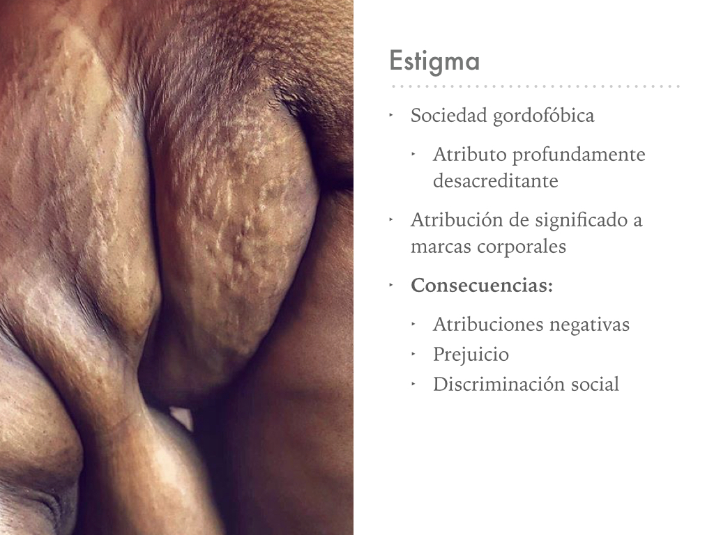 El estigma tiene esta capacidad de posibilitar la percepción de desajustes de la subjetividad gorda: los significados que se asocian a la gordura, como la indeseabilidad, enfermedad, e irresponsabilidad, son transferidos hacia el sujeto. El sujeto estaría expresando estas cualidades a partir la confesión de comportamientos incorrectos a partir de su marca corporal.
