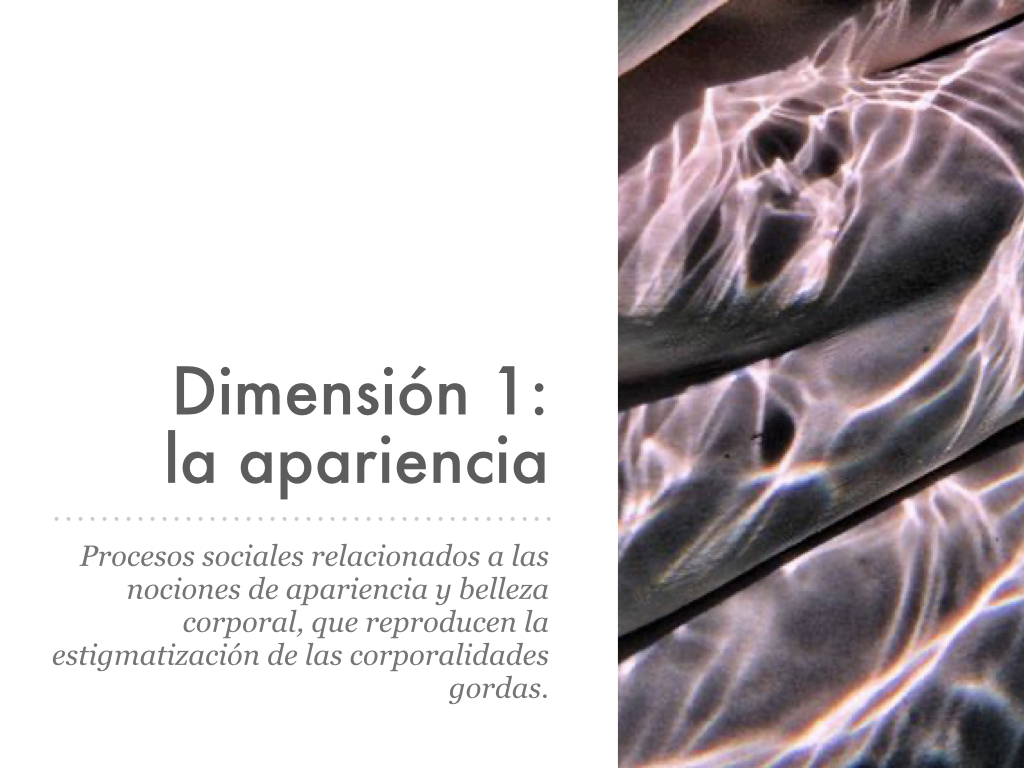 La primera dimensión es la de la apariencia, entendiéndola como la forma en que el cuerpo aparece o se presenta ante la mirada de los otros.