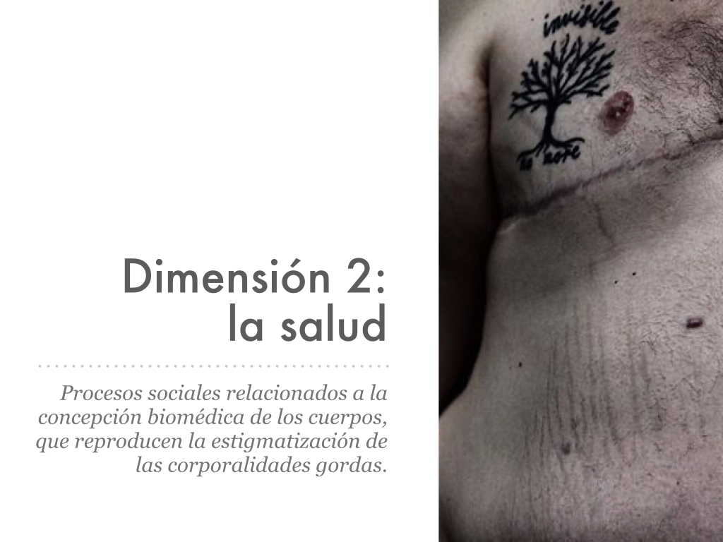 La gordura, entonces, es patologizada como un cuerpo enfermo, un cuerpo anormal, y que al mismo tiempo estaría confesando una desobediencia en torno a la norma de lo que es la salud.