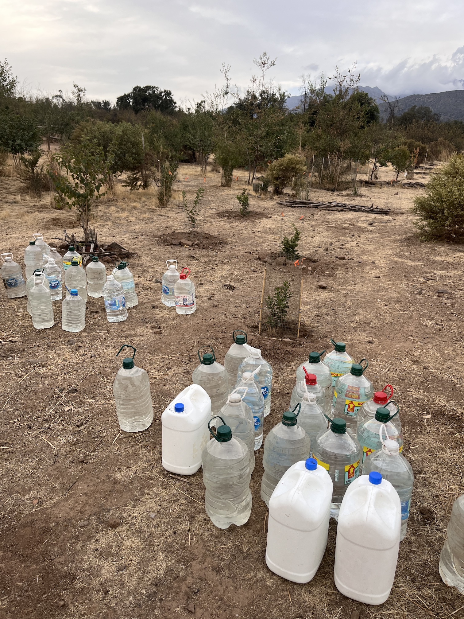 Luego de una invitación abierta de la organización Panul Parque Comunitario, asistí a una jornada de riego del sector de reforestación del bosque. La actividad estaba planificada en un momento preciso para el riego de las especies existentes, e incluso determinadas plantas estaban marcadas para riego en esta fecha, lo que demuestra un alto nivel de preocupación y planificación para el cuidado del bosque.