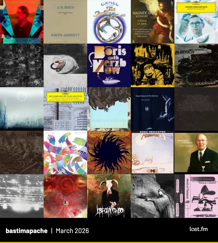 Resumen de los álbumes más escuchados durante marzo de 2026 según mi perfil de Last.fm.