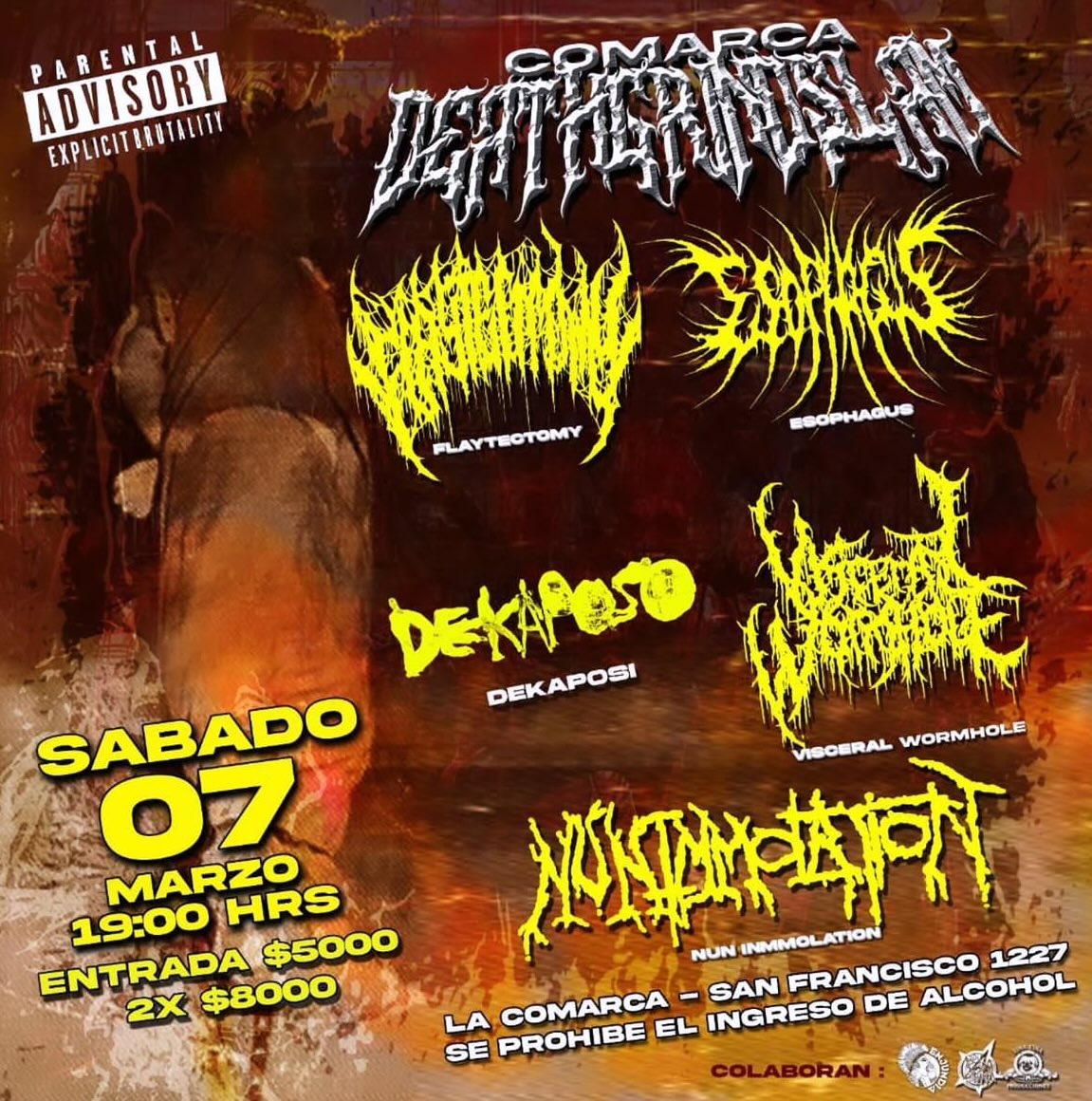 Tocata en la Comarca, epicentro de la escena del brutal death metal. Comarca Death Grind Slam reunió a tremendas bandas nacionales como Flaytectomy, Esophagus, Nun Immolation y Visceral Wormhole.